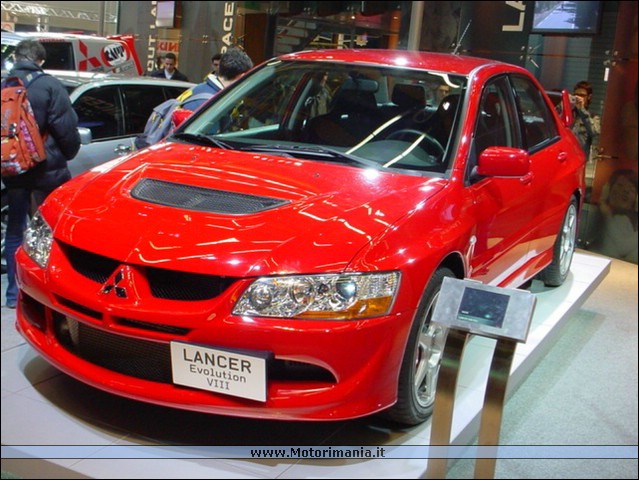 La nuova Mitsubishi Lancer Evo VIII è la logica evoluzione del modello precedente. La linea è più moderna, mentre la meccanica è come al solito esagerata; motore anteriore 2000cc. 4 cil. 16v. da 265cv. e 355Nm., il cambio a 5 marce, la trazione integrale e pneumatici 235/45 su cerchi da 17. Oltre alla targa, tra la versione da rally e la stradale le differenze non sono poi tante. |