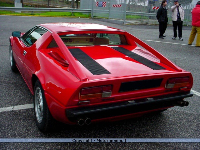 Nell'ottobre del 1972 venne presentata al Salone di Parigi la bellissima Maserati Merak e nel novembre dello stesso anno fece la sua apparizione anche al Salone di Torino. La Merak, che prende il nome da una stella dell'Orsa Maggiore, venne progettata da Giulio Alfieri per venire incontro ad una clientela che desiderava una vettura estremamente sportiva ma con costi di gestione relativamente contenuti rispetto alla Maserati Bora, che con i sui V8 da 4.7 e 4.9 litri, offriva prestazioni eccezionali ma con consumi di conseguenza molto elevati. La Merak ereditava il telaio dalla Bora, ma rispetto a quest'ultima si distingueva per numerosi interventi a livello di carrozzeria, che ricordiamo è firmata dalla Italdesign di Giorgetto Giugiaro; le differenze più evidenti riguardavano il paraurti anteriore, il diverso taglio degli sportelli, i cerchi in lega di nuovo disegno, il cofano motore completamente diverso non più ad apertura totale controvento, mentre per quanto riguarda gli interni si distingueva per il moderno cruscotto ereditato della Citroen Maserati SM e per i 2 piccoli strapuntini posteriori ottenuti grazie alle ridotte dimensioni del motore. Nel 1968 il commendator Adolfo Orsi e suo figlio Omer dovettero cedere il 60% della Maserati alla Citroen per far fronte ai futuri investimenti necessari per sviluppare i loro modelli, ma dal 1971 l'intera fabbrica divenne proprietà dei francesi, questo portò almeno inizialmente nuovi capitali e sinergie di gruppo. IL motore della Merak era lo stesso che precedentemente equipaggiava la Citroen Maserati SM, noto come "Tipo C114" era un compatto 6 cil. a V di 90 gradi realizzato con molte componenti in alluminio, la cilindrata era passata dai 2670 cc. della SM ai 2965 cc. della Merak. L'incremento di cilindrata era stato ottenuto portando la corsa a 91.6 mm e conservando l'alesaggio a 75 mm., questa modifica si rese necessaria per aumentare la potenza a 190 cv. Din. a 6000 giri/min. e la coppia a 26 kgm a 4000 girni/min. L'unità motrice era posizionata posteriormente e disposta in senso longitudinale con il cambio a 5 rapporti posizionato a sbalzo sulle ruote posteriori, questa soluzione permetteva di concentrare il peso del motore entro l'assale posteriore ed avere una ripartizione dei pesi equilibrata tra avantreno e retrotreno. La distribuzione avveniva tramite doppio albero a camme in testa per bancata e due valvole per cilindro. L'alimentazione era garantita da 3 carburatori a doppio corpo Weber DCNF. La trazione era posteriore con frizione monodico a secco. Per quanto riguarda il corpo vettura la Merak era a carrozzeria portante con sospensioni a triangoli sovrapposti, ammortizzatori idraulici con molla elicoidale coassiale e barra antirollio avanti e dietro, i freni erano a disco sulle quattro ruote e lo sterzo a cremagliera. I pneumatici erano differenziati sui due assi, infatti all'anteriore montava i 185/15, mentre al posteriore 205/15 su cerchi in lega Campagnolo. Le misure della Merak erano le seguenti: lung. 4.33 m., larg. 1.77 m., alt. 1.13 m., carreggiata ant. 1.47 m. post. 1.44 m., passo 2.6 m. Dal 1975 la Maserati passò fortunatamente nelle mani dell'argentino Alejandro De Tomaso e la Merak venne subito proposta nella più cattiva versione SS, che esteticamente si riconosceva per la griglia sul cofano anteriore in prossimità delle due grandi ventole di raffreddamento del radiatore, ma modifiche più consistenti riguardarono il cruscotto dal carattere decisamente più sportivo con un volante a quattro razze in luogo di quello a singola razza della SM e numerosi indicatori circolari raccolti davanti il pilota. IL motore beneficiò di carburatori Weber da 44 al posto dei 42, il rapporto di compressione passò da 8.75:1 a 9.1:1, la potenza salì a 220 cv. Din. ed il peso scese da 1320 kg. a 1270 kg. Nel 1976 venne approntata anche la versione 2000 GT con il V6 portato a 1999 cc. ed in grado di erogare 170 cv. Din a 7000 giri/min. e 19 kgm. a 5000 giri/min. di coppia massima. IL comportamento stradale della Merak era ottimo, infatti il suo comportamento neutro la rendeva relativamente facile da guidare, lo sterzo era preciso, il cambio leggermente duro ma preciso, ed i freni con pedale a corsa corta non accusavano mai cedimenti neanche nell'uso più esasperato. Le Merak raggiungevano i 245 km/h nella più potente versione SS, i 240 la 3 litri normale ed i 220 la 2 litri. La produzione di questa meravigliosa Maserati terminò nel 1982, dopo aver venduto 1700 esemplari nella versione 3 litri (di cui 1000 SS) e 200 nella versione 2 litri, infatti dal 1982 lasciò la scena alla fortunata serie Biturbo. |